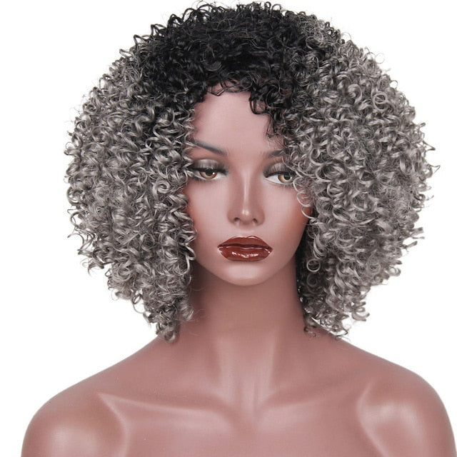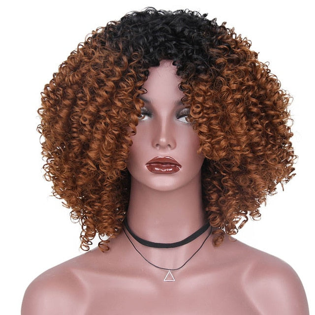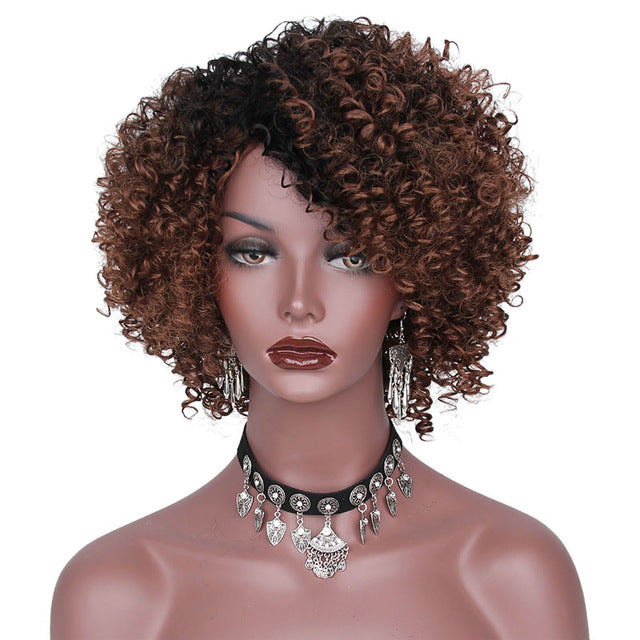 AISI HAIR High Temperature Fiber Mixed Brown and Blonde Color Synthetic Short Hair Afro Kinky Curly Wigs for Women Black Hair